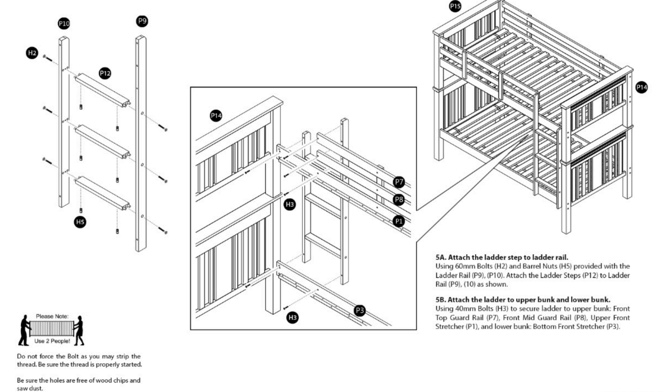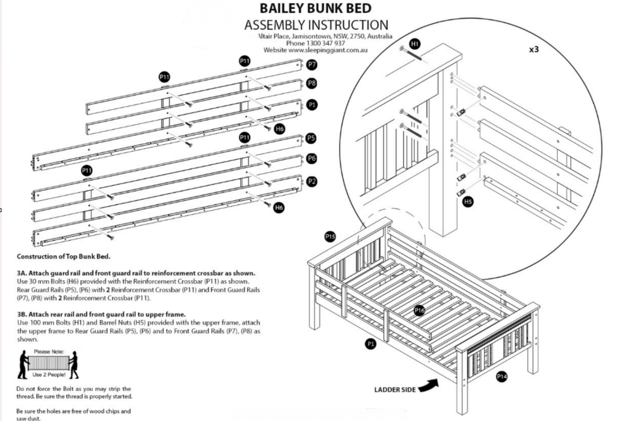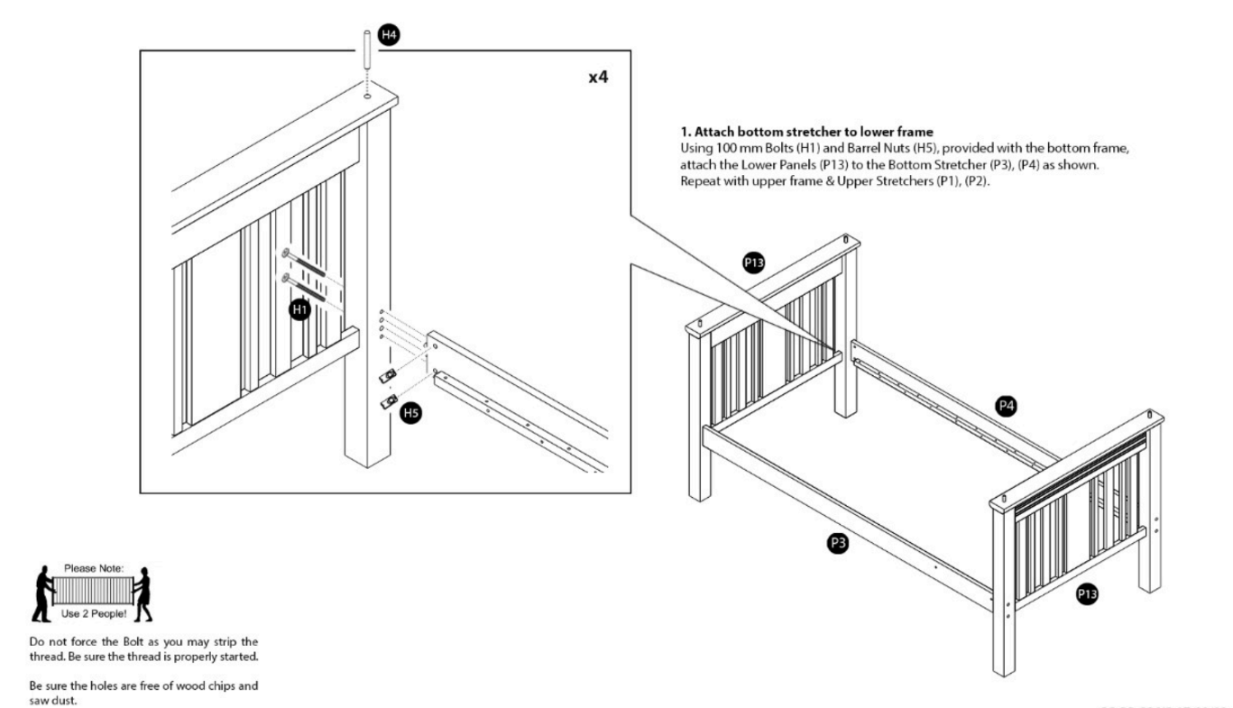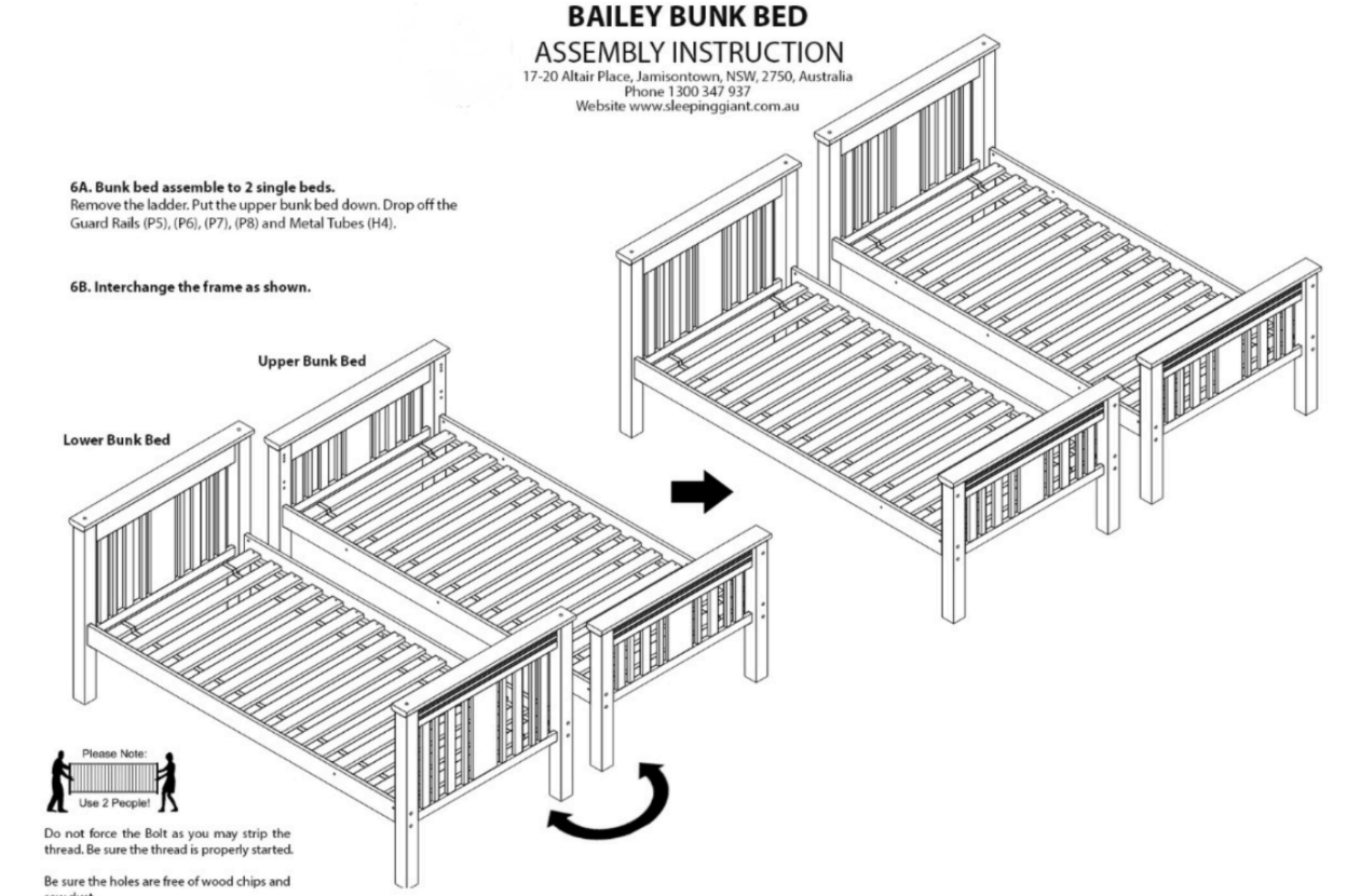 Before beginning assembly of your Bailey bunk (single & single), ensure all parts, fittings, and tools are included. Place components on a clean, soft surface to prevent damage. Attach the headboard and footboard of the Bailey bunk (single & single) to the side rails using the supplied fixings. Install the central support beam, if applicable, for added stability. Secure all fittings firmly without over-tightening. Evenly position and secure the slats across the frame. Check all connections before placing the mattress. Your Bailey bunk (single & single) is now ready for use.