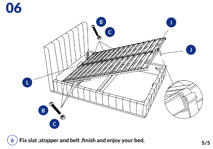 Before assembling your Brentwood Gas Lift, check that all parts, hardware, and tools are included. Place components on a soft, clean surface to prevent damage. Attach the headboard, footboard, and side rails using the supplied fixings. Install the lift mechanism and central support beam according to instructions, ensuring smooth operation. Secure all bolts firmly without over-tightening. Place and lock the slats into position. Double-check all connections before attaching the mattress. Your Brentwood Gas Lift bed is now ready for safe use.