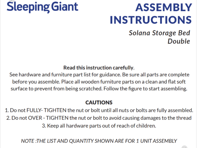 Drawer Bed Assembly Guide – Solana Drawer Storage Bed (All Sizes)