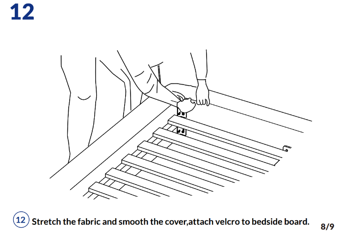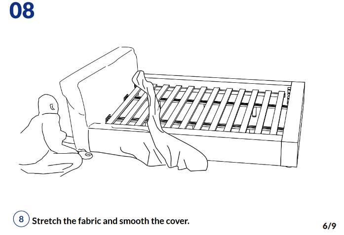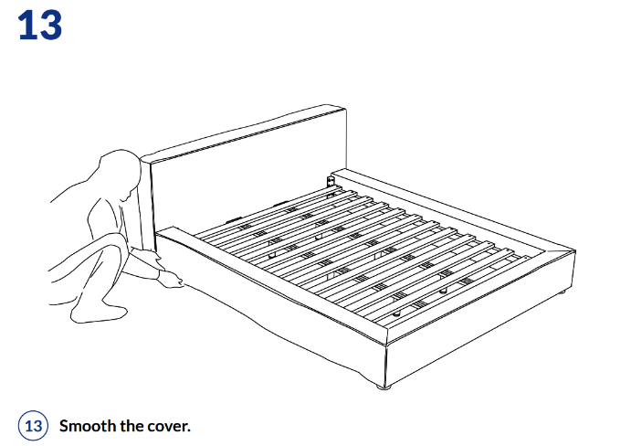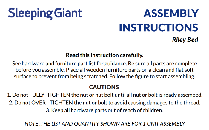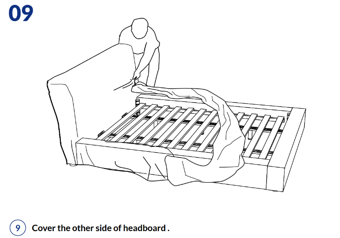 Before beginning assembly of your Riley Bed with Cover, ensure all parts, fittings, and tools are included. Place components on a clean, soft surface to prevent damage. Attach the headboard and footboard of the Riley Bed with Cover to the side rails using the supplied fixings. Install the central support beam, if applicable, for added stability. Secure all fittings firmly without over-tightening. Evenly position and secure the slats across the frame. Check all connections before placing the mattress. Your Riley Bed with Cover is now ready for use.