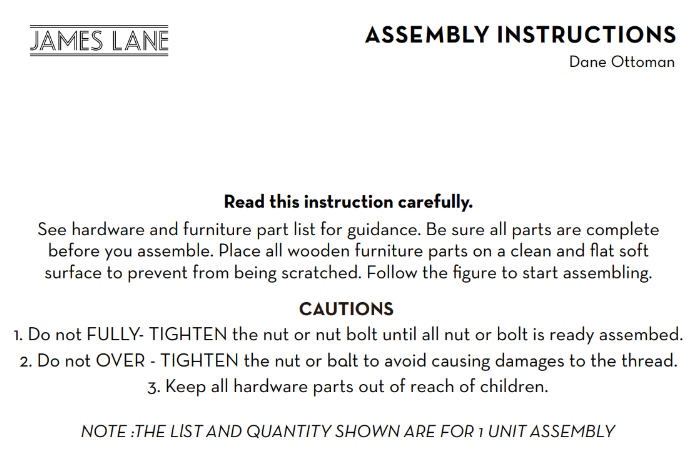 Sofa Assembly Guide – Dane Ottoman