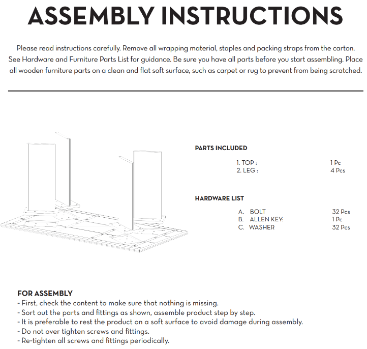 Dining Table Assembly Guide – Milo Dining Table (All sizes)
