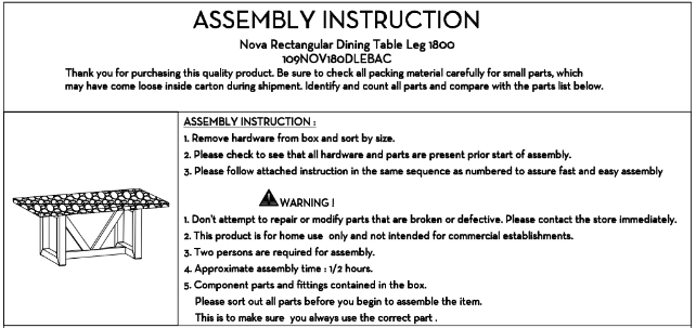 Dining Table Assembly Guide – Nova Rectangular Dining Table Leg (All Sizes)