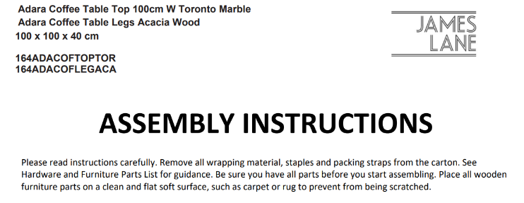 Coffee Table Assembly Guide – Adara Coffee Table (Feet/Legs/Base Required)