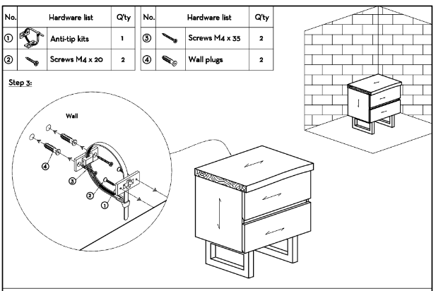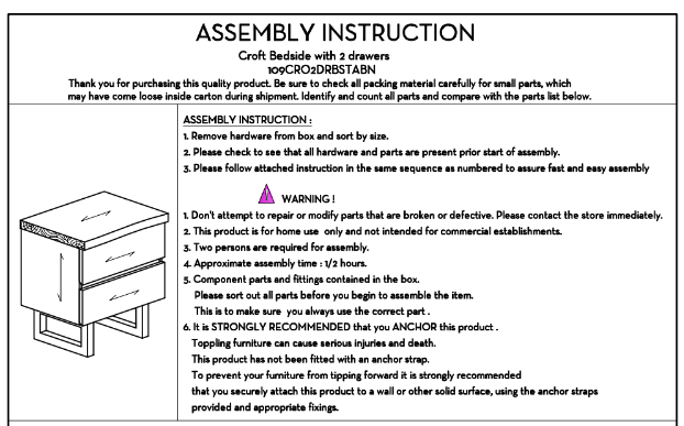 Bedside Assembly Guide – Croft Bedside With 2 Drawers