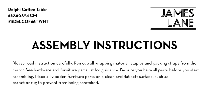 Coffee Table Assembly Guide – Delphi Coffee Table (Feet/Legs/Base Required)