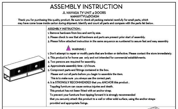 TV Unit Assembly Guide –Havasa TV Unit 4 Doors
