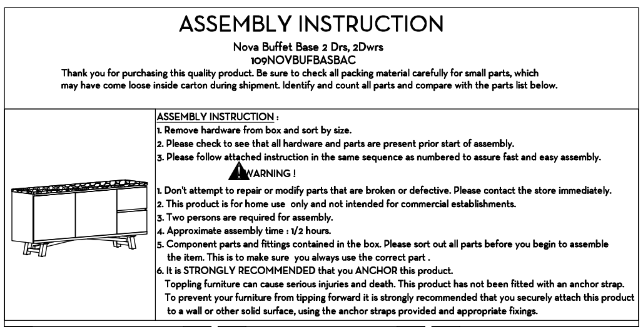Buffet / Sideboard Assembly Guide – [Nova Buffet Base