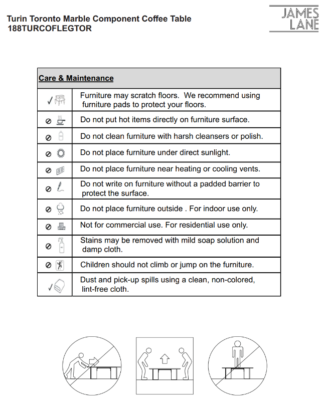 Coffee Table Assembly Guide – Turin Toronto Marble Component Coffee Table